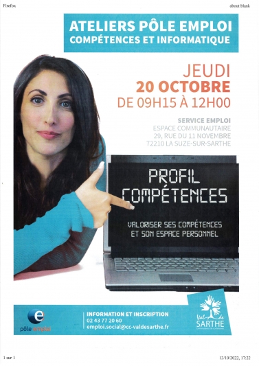 Le service emploi de la Communauté de Communes du Val de Sartheen partenariat avec pôle emploi organise un atelierle jeudi 20 octobre 2022de 9h15 à 12h00